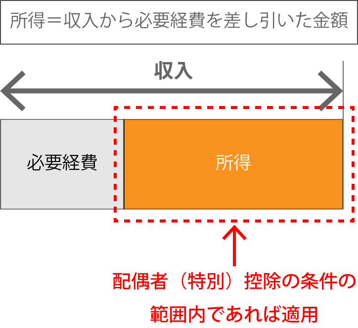 配偶者(特別)控除の適用にあたり、お客さまに確認していただくべき所得は「事業所得」になります。事業所得とは、収入から必要経費を差し引いた金額です。