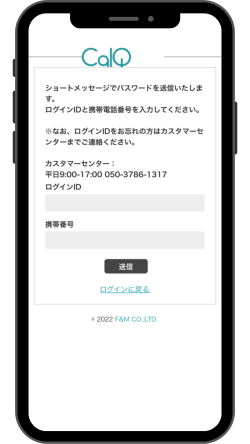 ページ下部の「パスワードを忘れた方はこちら」をタップし、ログインIDとご主人の携帯電話番号(ハイフンあり)を入力してください。ご主人の携帯電話番号宛にパスワード再設定用のSMSが届きます。