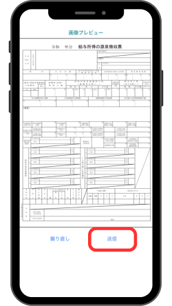 (3)アップロードする源泉徴収票の全体が写っているかを確認し、送信ボタンをタップしてください。