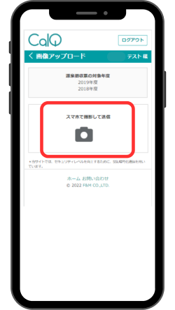 (2)「スマホで撮影して送信」をタップすると、カメラが起動します。